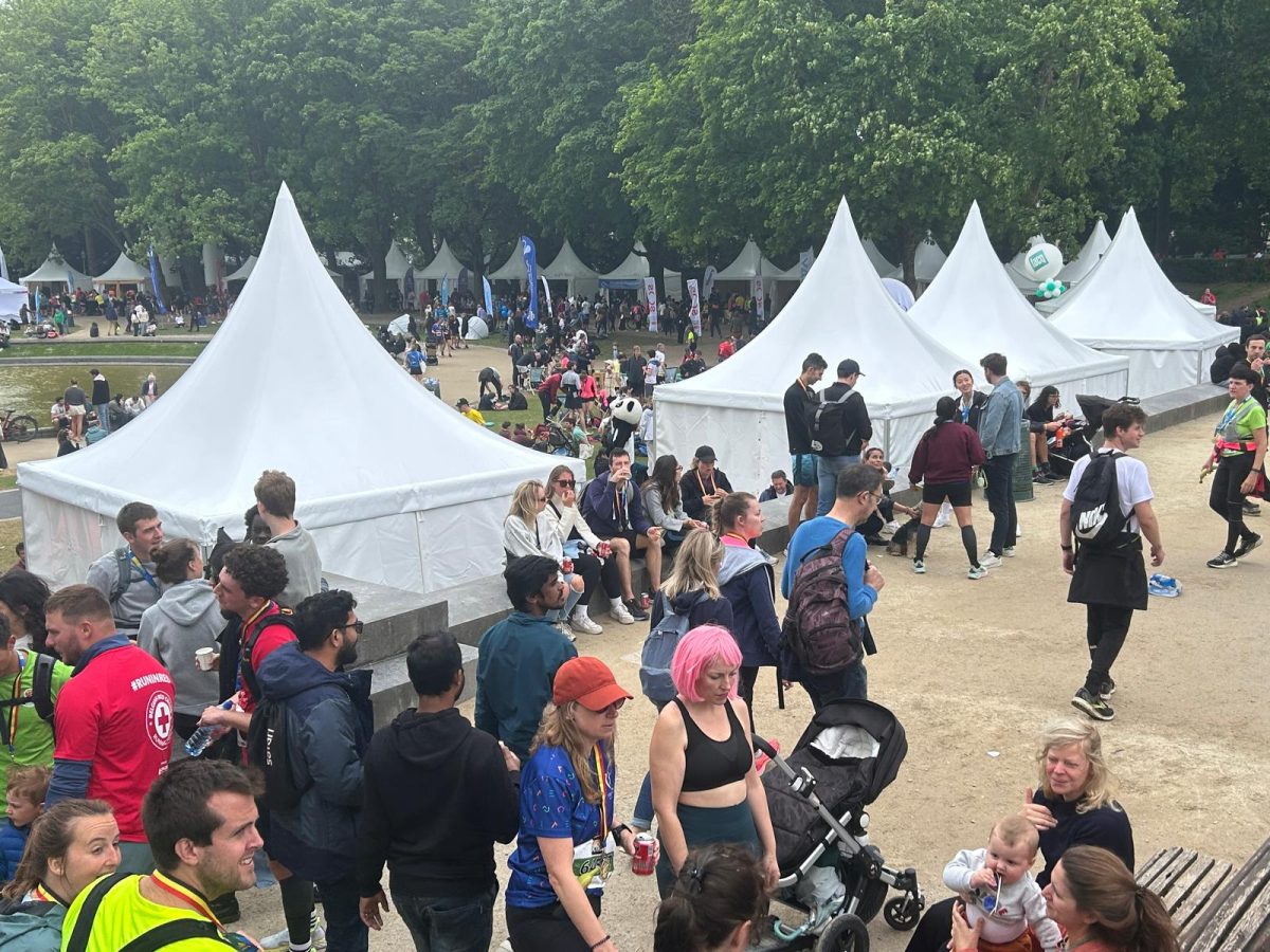 Als schnellste Frau erreichte die britische Läuferin Naomi Taschimowitz mit einer Zeit von 1:09:28 vom „Team Handshake“ das Ziel. Die Belgierin Amélie Saussez – Vorjahreszweite von 2024 – verpasste mit einer Zeit von 1:11:06 diesmal die Medaillenränge und landete auf Platz vier. Mit dem Rückenwind ihrer Unterstützer diesmal als Favoritin für den Sieg ins Rennen gegangen, nahm sie das Resultat mit belgischer Nonchalance: „Ich erreiche diesmal auf Platz vier eine Schokoladen-Medaille, aber das ist nicht tragisch, denn ich liebe Schokolade“, sagte die sympathische Belgierin schmunzelnd in die Kameras. Als zweifache Mutter ihre Bestzeit um 30 Sekunden verbessert zu haben, bereite ihr dennoch große Freude.