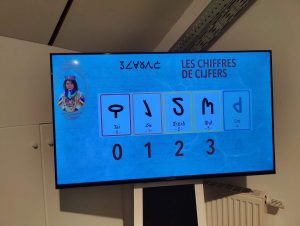 Natürlich erfolgt alles in der Landessprache. Auch die echten Assistenten, die im Ausstellungsraum zur Verfügung stehen, sprechen eine Kunstsprache und bedienen sich zur unterstützenden Verständigung der Zeichensprache. Auf dem Gemeindebüro bekommt man eine Registrierungsnummer in den beldaviischen Zahlenzeichen. Diese Nummer muss man sich notieren, da man sie im weiteren Verlauf des Spieles braucht.