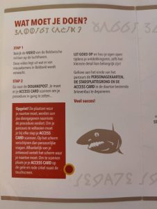 Beim Eintritt ins Museum wurde man schon aufgefordert, sich eine Rolle auszusuchen: Wirtschaftsflüchtling, Asylsuchender oder Familiennachzügler. Nachdem man sich für eine Rolle entscheiden hat, bekommt man eine entsprechende elektronische ID-Card sowie eine zur Rolle passende Anleitung (FR und NL).