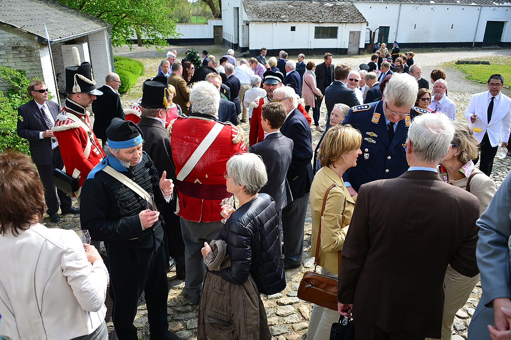 Das Ehrenmal des „Braunschweiger Löwen“ in der Gemeinde Genappe ist der Erinnerung an Herzog Friedrich Wilhelm von Braunschweig gewidmet, der am 16. Juni 1815 an der Kreuzung von Quatre-Bras im Kampf mit französischen Kürassieren gefallen war. Nach den Grußworten legte Botschafter Dr. Cuntz zusammen mit seinem französischen Amtskollegen Bernard Valero, der Chargée d’affaires der britischen Botschaft, Katrina Johnson, dem Bürgermeister der Gemeinde Genappe sowie Vertretern des Braunschweiger Leibregiment und der Braunschweiger Jäger am „Braunschweiger Löwen“ einen Kranz nieder – zur Erinnerung an den „schwarzen Herzog“ und seine „schwarze Schar“. Nach der gemeinsamen Enthüllung der Gedenkplakette wurde die Einweihungszeremonie am etwa 15 Minuten entfernten Hannoveraner Ehrenmal fortgesetzt.