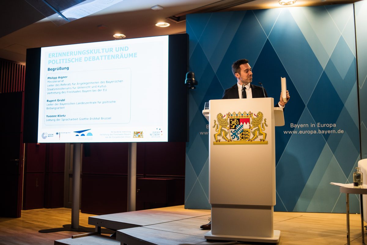 Philipp Aigner von der bayerischen EU-Vertretung brachte es in seiner Begrüßung auf den Punkt: Es gehe um “Wissen” und um “Mitmachen”. Wissen und Erinnerung werde gerade in postfaktischen Zeiten zunehmend zu einer Herausforderung und damit zu einer brüchigen Grundlage für das “Mitmachen”, das heißt die Teilnahme an politischen Debatten.