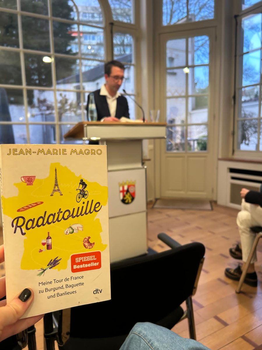 An diesem Abend präsentiert Magro, ein schlaksiger Mittdreißiger, der seit wenigen Monaten zum Team der ARD-Hörfunkkorrespondenten in Brüssel gehört, in der EU-Vertretung von Rheinland-Pfalz sein im vergangenen Jahr erschienenes Buch „Radatouille“. Mit dem Erlebnisbericht „Meine Tour de France zu Burgund, Baguette und Banlieues“ will er Frankreich-Liebhabern und solchen, die es noch werden wollen oder sollen, ein authentisches Frankreichbild der heutigen Zeit mit Entdeckungen vermitteln, die in keinem klassischen Reiseführer zu finden sind.