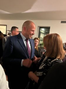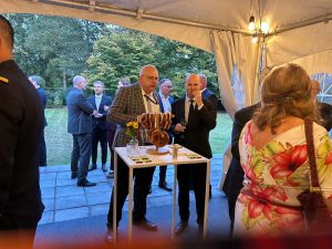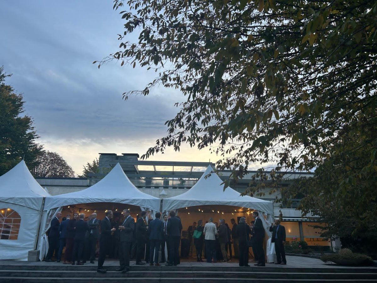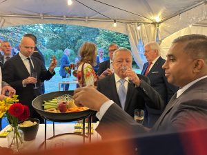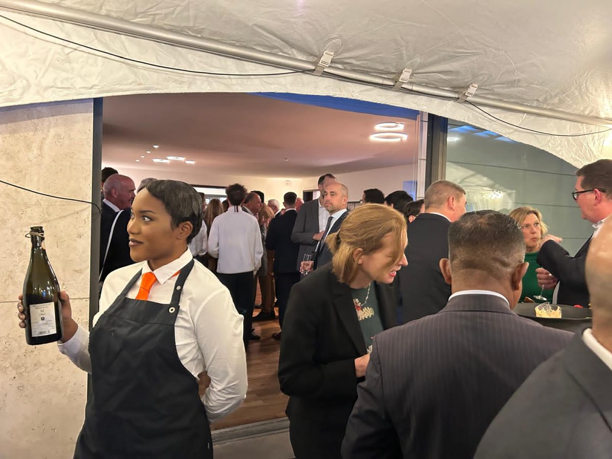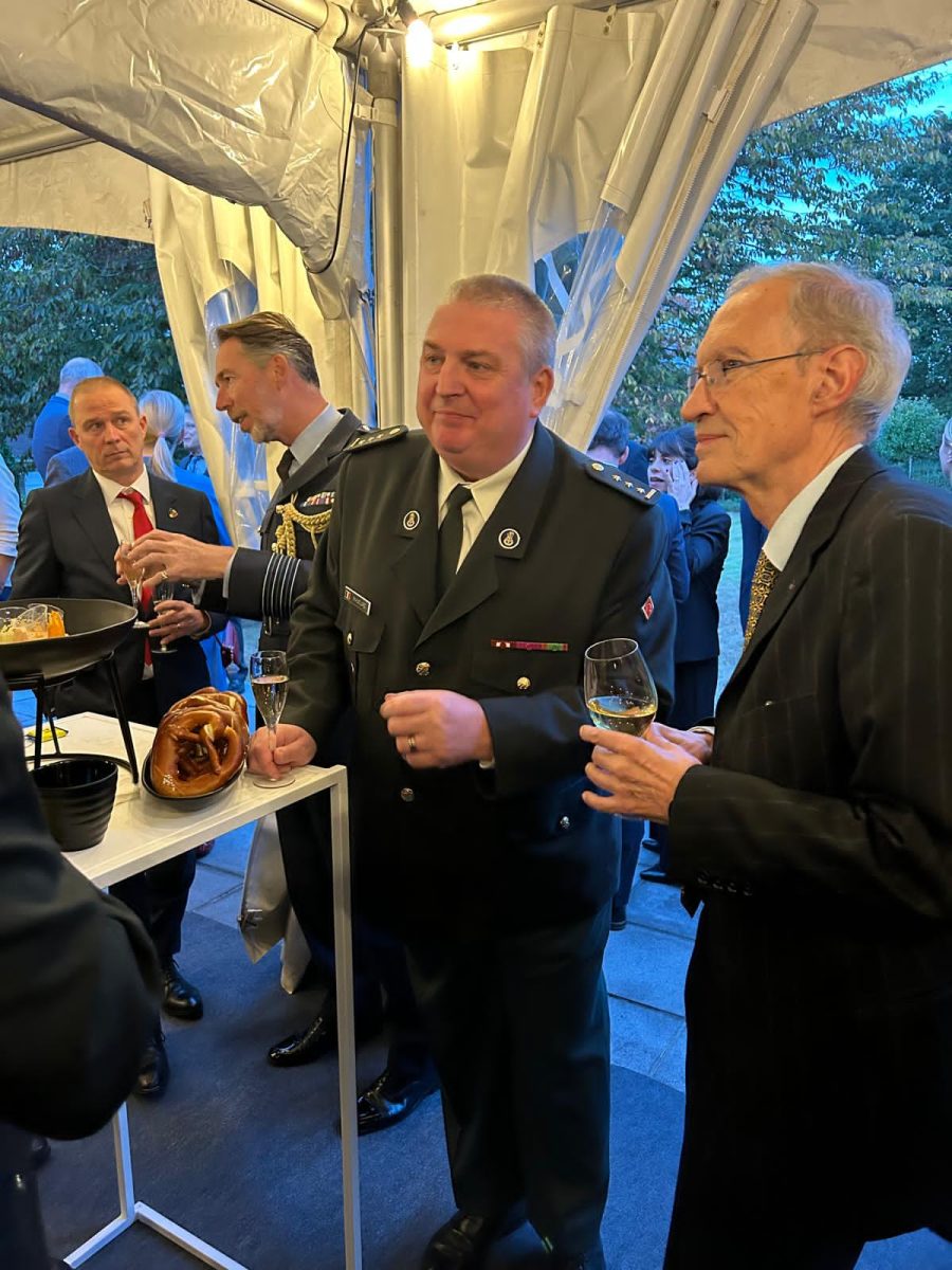 Bereits vor 19 Uhr, dem Start des Empfangs, herrschte Partylaune vor der Residenz der Botschaft in der Avenue de Tervuren. Die große Anzahl der internationalen Gäste freute sich auf ein Fest, bei dem seit Jahren das Netzwerk und der festliche Anlass im Vordergrund stehen. Aus Sicherheitsgründen mussten alle Gäste durch eine Sicherheitsschleuse, was allerdings sehr schnell ging. Und kaum war man durch, bildeten sich beim Betreten der Residenz gleich wieder Schlangen, was der bereits heiteren, entspannten sowie fröhlichen Stimmung keinen Abbruch tat. Alle, darunter zum Teil sehr hochkarätige Gäste wie der belgische Parlamentspräsident Peter De Roover und der belgische Verteidigungsminister Theo Francken, warteten gerne, da Deutschlands Botschafter seine Gäste wie stets mit Händeschütteln begrüßte, locker mit ihnen plauderte, bevor er in seiner Festrede ernstere Themen ansprach.