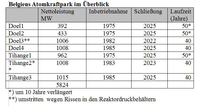Aber nur 7,6 Milliarden Euro stünden voraussichtlich für den AKW-Rückbau und die Atommüllentsorgung, also gerade einmal die Hälfte der erforderlichen Summe, zur Verfügung, und zwar in Form von Stilllegungsfonds. Längere Laufzeiten der AKW könnten dazu führen, dass mehr in die Fonds fließt. Denn mit jeder gelieferten Kilowattstunde Atomstrom wird der Topf weiter gefüllt. Zahlen tun dies die belgischen Stromverbraucher über Umlagen. Es kommt also darauf an, wie lange Belgien seine alten Atommeiler noch laufen lassen kann?