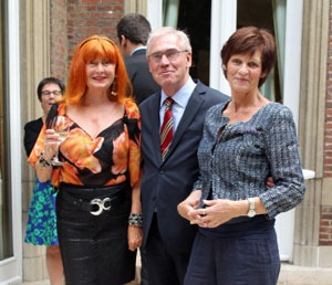 Foto: Gruppenbild mit Herrn. Der deutsche Botschafter Dr. Eckart Cuntz, flankiert von den beiden Belgieninfo-Mitarbeiterinnen Heide Newson und Marion Schmitz-Reiners.