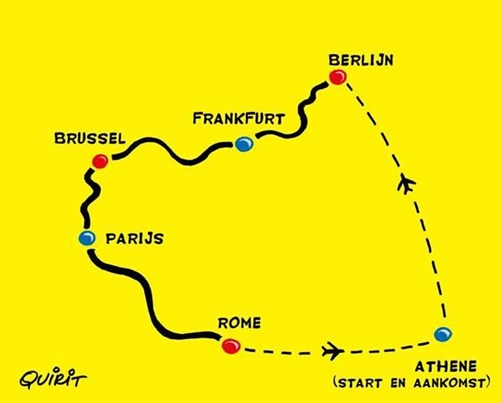 Neuer Star der griechischen Strampel-Mannschaft ist Euklid Tsakalotos. Sein Vorgänger Yanis Varoufakis wurde zu den Begleit-Motorrädern der Tour de France in Belgien zwangsversetzt. (c) Quirit.