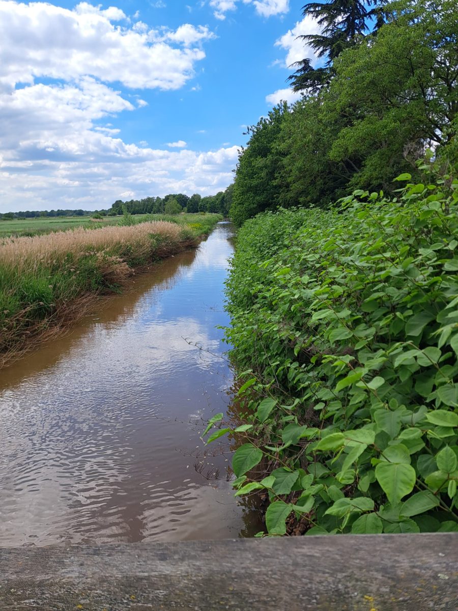 Wer Zeit und Muße hat, kann, je nach Wasserstand, zwei bis drei Tage vor der Wanderung (oder auch sonst) ein Kajak mieten, mit dem man eine kleine oder größere Tour auf dem friedlich dahinfließenden Fluss unternehmen kann (De Waterral – Kajak en recreatie Herentals – Home). Wir beschränken uns auf den Fußweg, der sich nun, anders vor Jahresfrist, als wir dort regelrecht im Schlamm versanken, von seiner trockenen Seite zeigt. Wir folgen dem Verlauf der Kleine Nete eine Weile, ehe der Weg nach rechts abzweigt und sich von ihr entfernt.