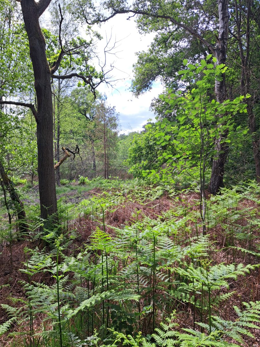 In südöstlicher Richtung laufen wir danach weiter durch den Wald und passieren die Punkte 25 und 27. Hier herrscht, auch dank zweier asphaltierter Spuren mehr Betrieb durch Radfahrer, aber auch Wanderer. Kurz hinter dem Punkt 27 zweigen wir schräg nach rechts ab – es sei denn, wir gehen noch ein paar Meter weiter und kehren in der auf dem Gebiet der Gemeinde Lichtaart gelegenen Brasserie Floreal Kempen – samt Spielplatz – ein.