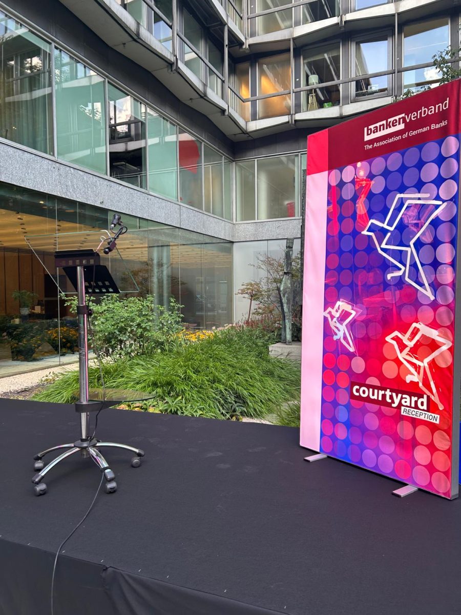 “La Rentrée” im Parlamentsviertel nach der Sommerpause startet seit einigen Jahren traditionell unter der Adresse „Arts 56“ unweit des Parlaments. Das achtgeschossige Gebäude lädt beim Durchqueren des imposanten Foyers zum Entdecken des als „Courtyard“ apostrophierten großzügigen, als Gartenlandschaft gestalteten Innenhofs ein. Als Gastgeber des Abends fungierte am 1. September der Bundesverband deutscher Banken (BdB).