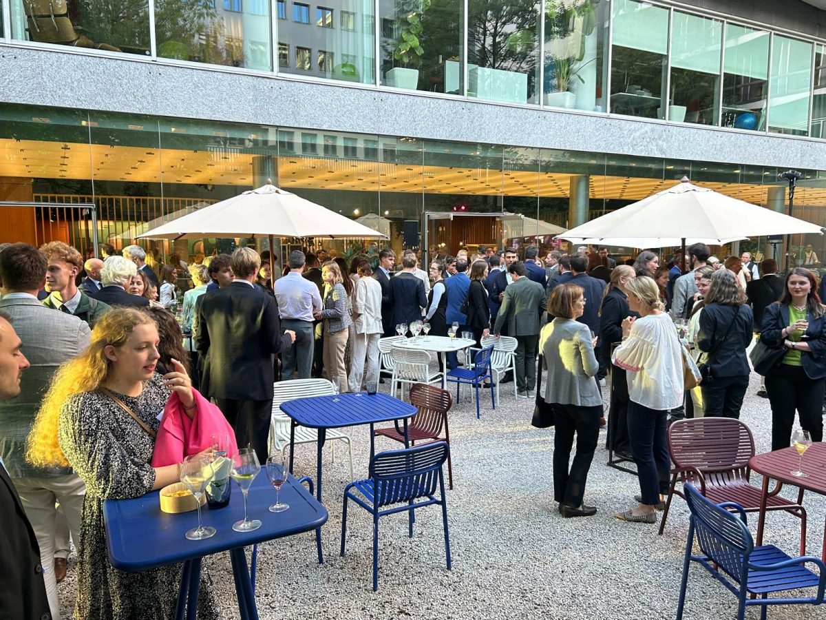 Den offiziellen Redebeiträgen folgte Networking im außergewöhnlichen Ambiente dieses einzigartigen Patio im EU-Parlamentsviertel bei alkoholfreien Cocktails unter freiem Himmel mit DJ performance. Raffiniertes Catering-Angebot sowie erlesene Weine, Bier vom Fass sowie Gin-Getränke an der Indoor Bar ließen die Gäste bis in den späten Abend verweilen – bis schließlich kurz vor Mitternacht ein kräftiger Regenschauer zum Aufbruch mahnte.