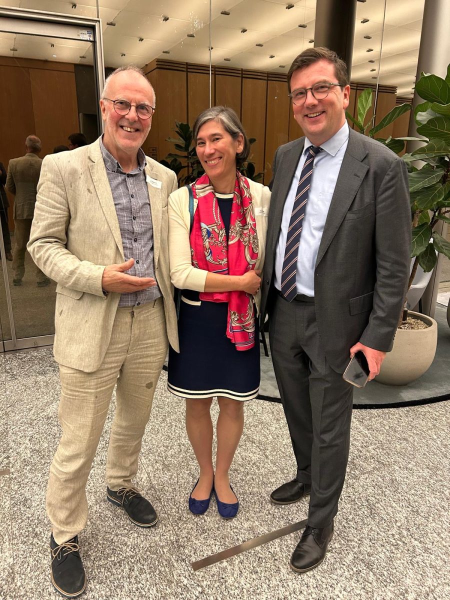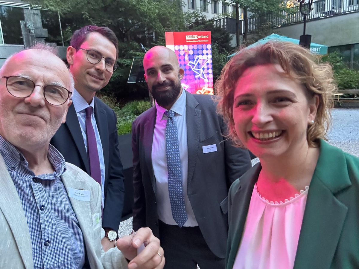 Der gesamte Vorstand war zu diesem Auftaktereignis aus Berlin und Frankfurt angereist. Neben dem Hauptgeschäftsführer Heiner Herkenhoff aus Berlin die Vorstandsvorsitzende der Commerzbank, Bettina Orlopp, und die Geschäftsbereichsleiterin Miye Kohlhase aus Frankfurt. Als Wanderer zwischen den Welten pendelt Vorstandsmitglied Kolja Gabriel seit zwei Jahren als Leiter des Geschäftsbereichs Politik und Innovation unablässig zwischen Berlin und Brüssel. Seine Nachfolge als langjähriger Leiter des Brüsseler Büros bekleidet seit Oktober 2023 Ute Schmaltz.