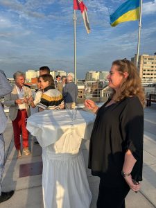 Heute ist der Film natürlich nicht mehr verboten, und er kann auf verschiedenen Wegen angeschaut werden. Aber diesen so lustigen Film in der hessischen Landesvertretung und wie in einem Kino mit Popcorn verfolgen zu können, war schon was ganz Besonderes. Und im Anschluss noch die Möglichkeit zu haben, über den Dächern von Brüssel, genauer auf der tollen Dachterrasse der Vertretung, bei strahlender Abendsonne über den Film zu fachsimpeln, war eine Herausforderung – nicht nur für meine Lachmuskeln.