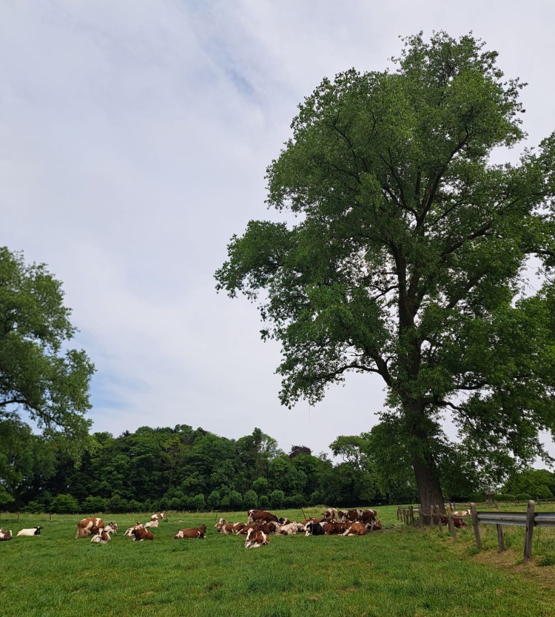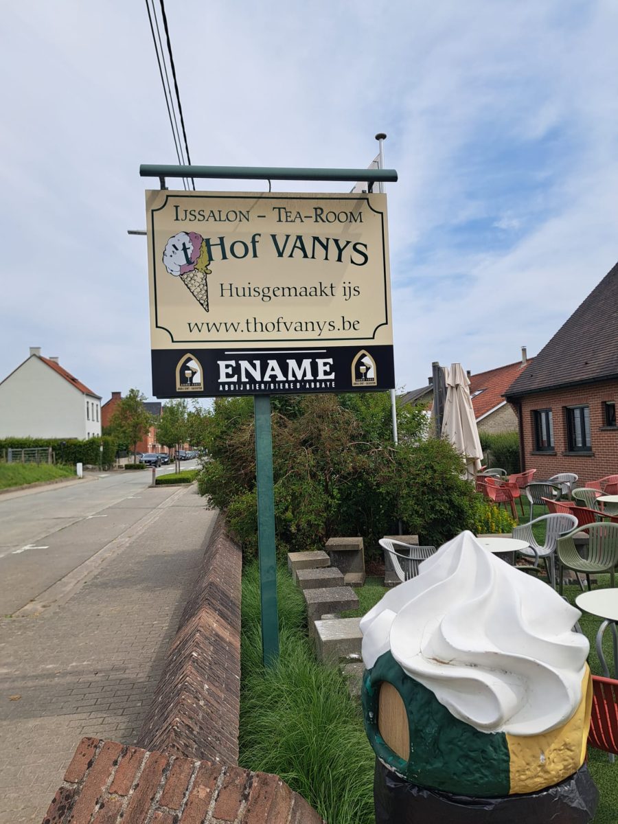 Erläuterungen zu den Gemälden, aber auch zum Projekt „Buitenkunst“ sind über audiovisuelle, per QR-Code auf dem Handy abrufbare Beiträge zu erhalten – leider nur in niederländischer Sprache. So schildern mehrere heutzutage in dem Gebiet heimische Bewohner ihre Eindrücke. Tatsächlich blicken wir schon nach dem Abhören des ersten Beitrags mit etwas anderen Augen auf die Umgebung. In die Gegenwart zurück holt uns kurz darauf unvermittelt der Anblick des Eiscafés und Tea-Rooms „Hof Vanys“. Leider ist das Etablissement „nur bei gutem Wetter“ sowie an mittwochs, freitags (in der Ferienzeit) sowie samstags und sonntags und dann nur von jeweils 14.30 bis 17.30 Uhr geöffnet. Auch wer zu früh kommt, den kann das Leben zuweilen bestrafen!