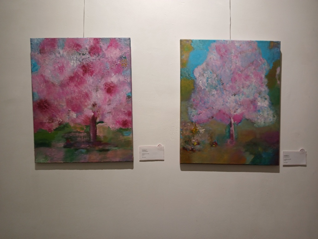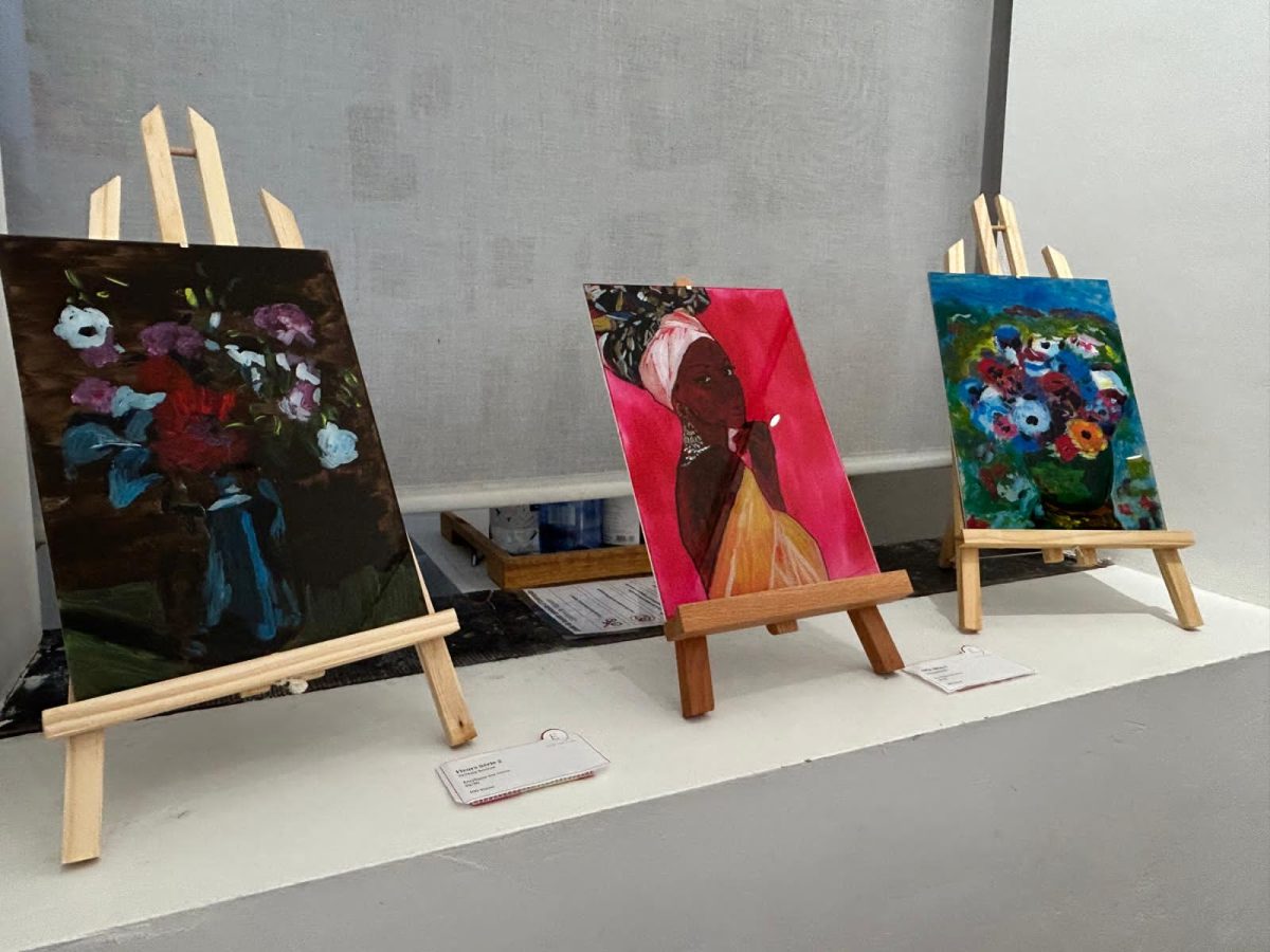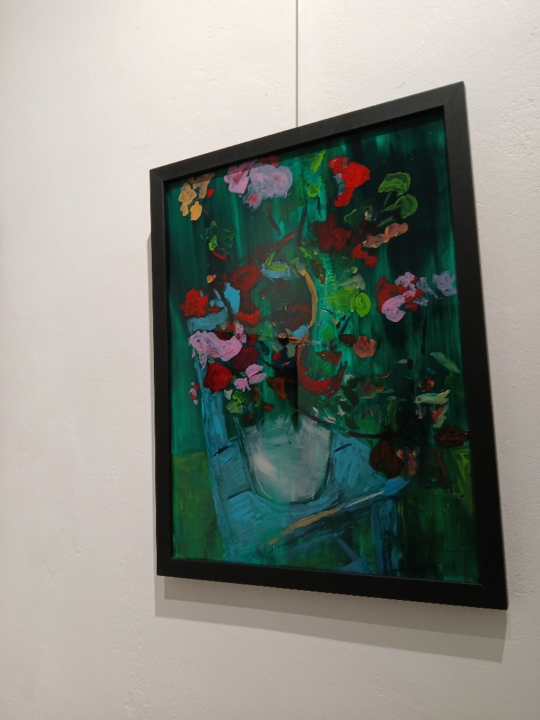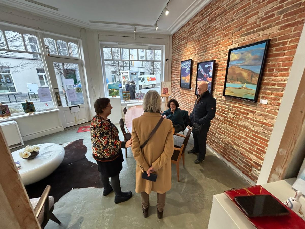 Die ausgestellten Werke – an den Wänden, aber auch auf kleinen Staffeleien präsentiert – profitieren vom einströmenden Naturlicht der zwei großen Schaufenster des ehemaligen Ladenlokals.