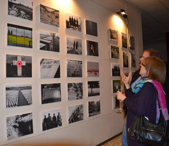 „Eine beeindruckende Ausstellung zu einem bedrückenden Thema!“, mit diesen Worten fasste François-Xavier Reymond, Premier Conseiller der Französischen Botschaft in Brüssel, seine Impressionen vom Rundgang durch die Ausstellung zusammen. Andere prominente Gäste waren Dr. Eckart Cuntz (Deutscher Botschafter im Königreich Belgien), Annie Ferguson (Kultur-Attachée der Britischen Botschaft), Evelyne Regniez (Direktorin des Lycée Français Jean Monnet) und Edmond Maher (Leiter der DY Patil International School). Und so führten die Schüler Anna Rabea Sunnus, Freya Susanne Gronemeier und Lorenço Mosqueira Do Amaral zu Beginn des Abends die illustre Gästeschar dreisprachig durch die Schau und erläuterten fachkundig die Exponate.