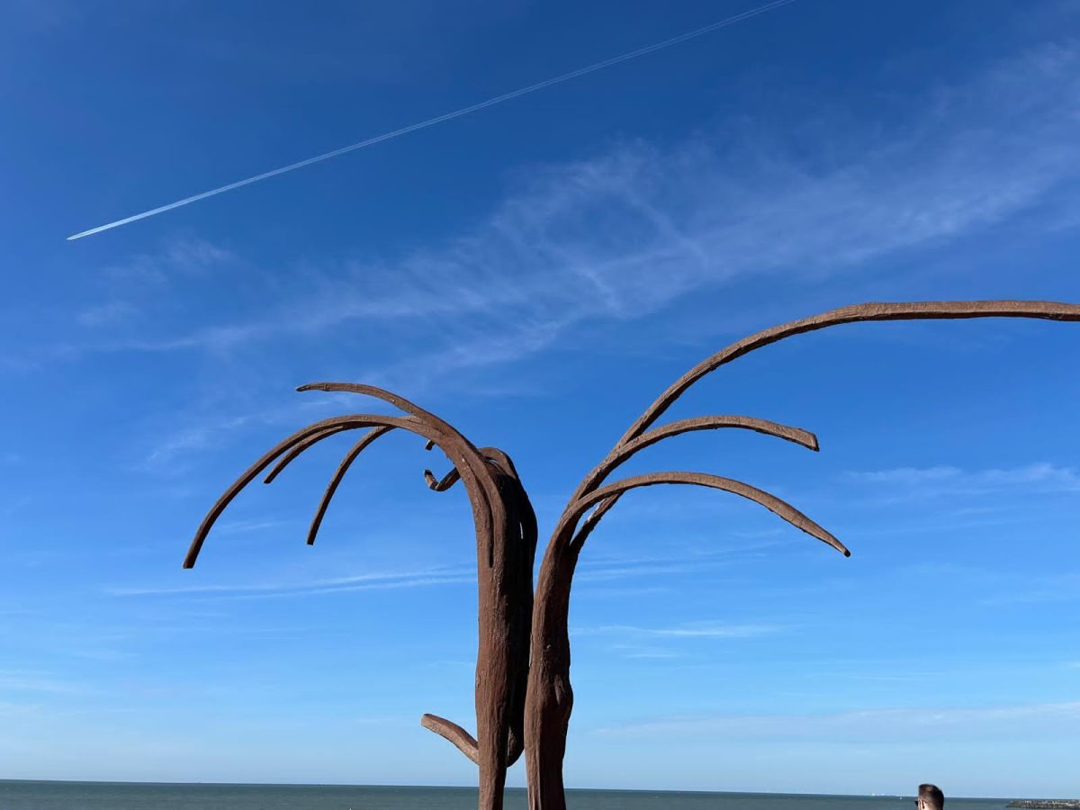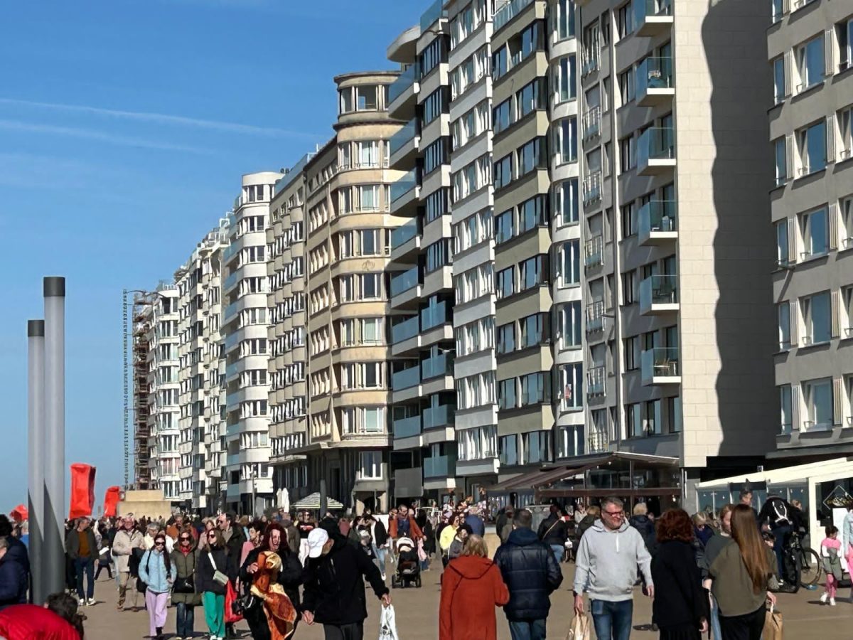 Vorbei am Casino wird endlich der Blick frei auf das blaue Band der Nordsee. An diesem Ostermontag zeigt sich „la mer du nord“ in einer selten erlebten Sanftheit windstill und kaum mit Wellenschlag trotz ansteigender Flut. Auf der Uferpromenade sitzen mehr Gäste auf den sonnigen Außenterrassen als innen in den Restaurants. Ein mediterran anmutendes Ambiente mit haushohen Palmen und einem DJ unter gelbweißem Sonnenschirm auf der dem Meer zugewandten Casino-Gebäude lockt Hunderte von Einheimichen und Touristen aus aller Welt zum Flanieren ein.