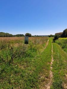 Vom Punkt 77 aus verläuft die Route nun in nördlicher Richtung über den Punkt 76 und eine Brücke über den Bach Zuun zu dem 600 Meter entfernten Punkt 73. Hier zweigen wir nach rechts auf einen schmalen Pfad zum Punkt 733 ab. Zuvor haben wir linkerhand den die sanfte Hügellandschaft überragenden grünen Turm der Kirche des benachbarten Orts Oudennaken gesichtet. Der seit einigen Jahren nicht mehr für Gottesdienste genutzte Bau soll nach flämischen Medienberichteten Ende 2027 „entweiht“ werden und fortan als nichtkirchliche Begegnungsstätte dienen.