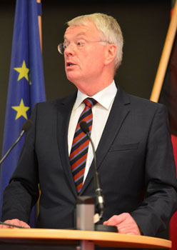 Dann ging er auf die exzellenten deutsch-belgischen Beziehungen ein. „Deutschland und Belgien sind nicht nur Nachbarn. Sie verbindet vielmehr eine enge, von gegenseitigem Vertrauen getragene Freundschaft.“ Zudem würden die Beziehungen zwischen beiden Ländern auf einem soliden Fundament gemeinsamer Überzeugungen und Bekenntnis zur europäischen Integration und europäischen Werten gründen. „Ich hoffe, dass ich während der nächsten Jahre einen Beitrag zur Pflege und weiteren Vertiefung der bilateralen Beziehungen zu leisten vermag.“ Die vielfältigen aktuellen Herausforderungen könne man nur gemeinsam in enger europäischer Zusammenarbeit meistern.