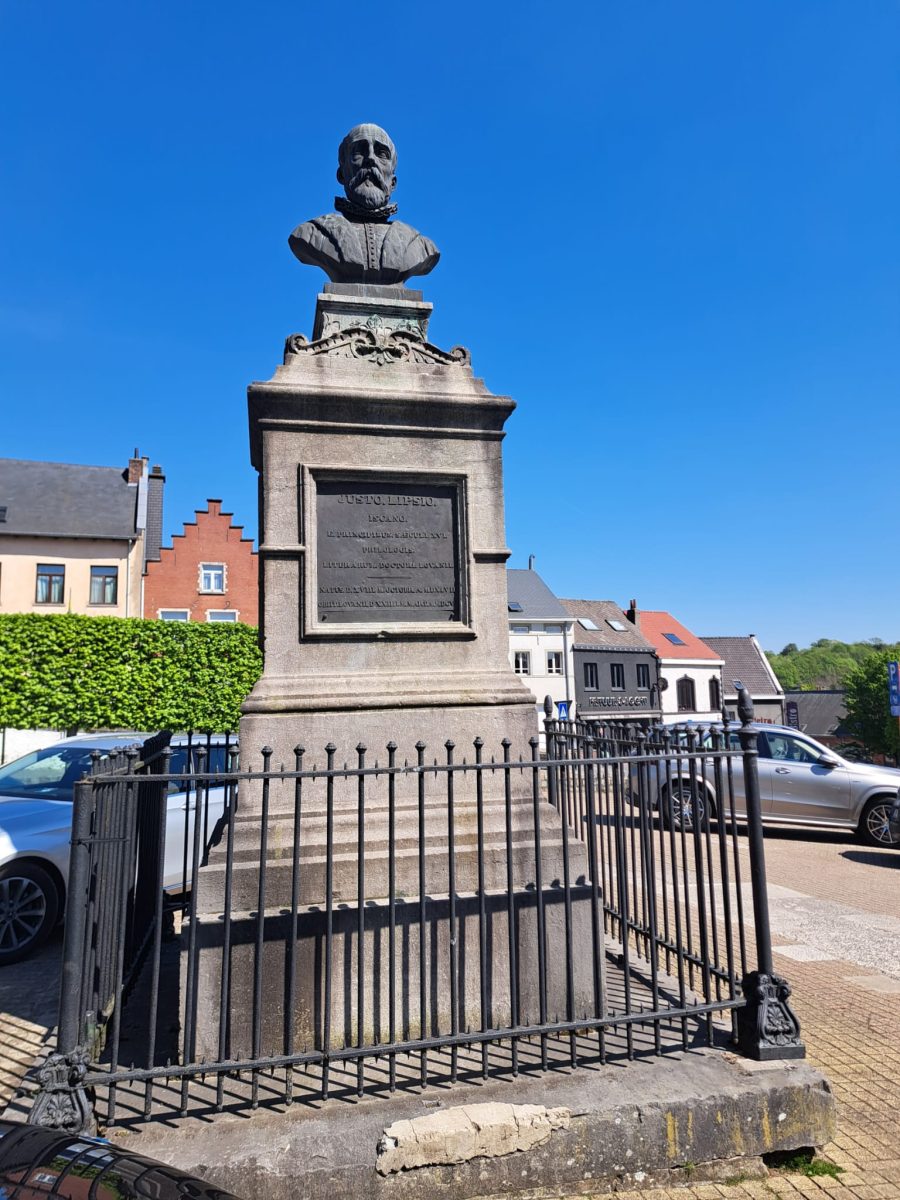 Gegenüber liegt die Sint-Martinuskerk, die Hauptkirche von Overijse, deren Ursprünge bis ins 12. Jahrhundert zurückreichen. Der Weg zum rund 1,4 Kilometer entfernt gelegenen nächsten Knotenpunkt 344 führt an den Gasthäusern Den Bonten Os und De Met vorbei nach oben. Ehe wir die Hauptstraße überqueren, können wir rechterhand das Standbild des in Overijse 1547 geborenen Philosophen Justus Lipsius sehen. Nach ihm ist das Hauptgebäude des Rates der Europäischen Union im Brüsseler Europaviertel benannt.