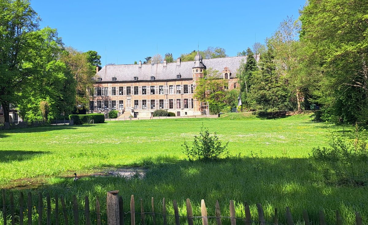 Wir schlendern am nördlichen Ufer des Teichs in Richtung des Punkts 330 zu einer großen Kreuzung mit Ampeln. Rechts liegt das zunächst Ende des 15. Jahrhunderts entstandene Schloss Kasteel van Ijse, das heute eine Grundschule beherbergt. Wer den Abzweig am ehemaligen Jagdpavillon verpasst hat, erreicht nach wenigen Schritten den Punkt 30 und kann dort nach rechts abbiegen, das südliche Ufer des Teiches säumen und dann ebenfalls zur Kreuzung gelangen.