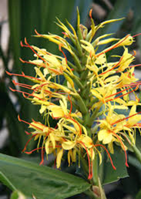 Im selben Beet stehen auch meine Ingwerpflanzen (Hedychium gardnerianum), die meinen Garten im Spätsommer mit ihren gelb-roten Kerzen zieren und bei denen ich in jedem Jahr meine Zweifel habe, ob sie auch ausgraben soll, Angeblich sind sie winterhart, aber am Ende überwintere ich die großen Rhizome doch frostfrei.