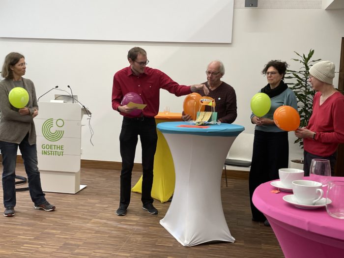 Die verschiedenen Themengruppen widmeten sich beruflichen Fragestellungen, z.B. Wie kann ich persönlich die ganze Schulfamilie davon überzeugen, dass Deutsch eine gute Investition in die Zukunft ist? Wie kann ich es schaffen, dass sowohl ich, als auch die Schüler*innen bereit sind, möglichst viel in den Unterricht und den Lernstoff zu investieren? Aber sie befassten sich auch mit Themen, die während der Pandemie aufkamen, z.B. mit Blended Learning, also der Frage, wie in Zukunft ein guter und interaktiver Deutschunterricht aussieht, der aus Präsenzphasen, asynchronen Online-Phasen und Online-Live-Sitzungen besteht? Auch die sinnvolle Integration von Handlungsorientierung und Projektunterricht gehörte zu den Fragestellungen.