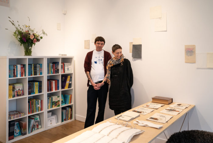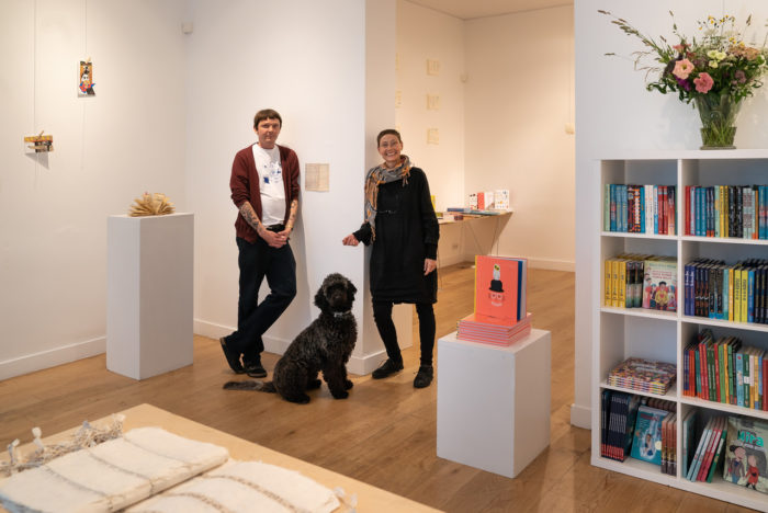 Begleitet wird der Buchverkauf daher von einer Ausstellung dreier Kunstschaffender, die sich auf ihre ganz eigene Weise mit dem Medium Papier auseinandersetzen: Wilfried Bohne, Matthias Ruthenberg und Hiltrud Schäfer – alle drei haben schon zuvor in Brüssel ausgestellt und sind am Wochenende 25./26. Juni anwesend. Ruthenberg (auf den Fotos gemeinsam mit Silke Grammatikos), der sich häufig zwischen bildender Kunst und Poesie bewegt, wird zudem am Freitagabend mit eigenen Texten zu erleben sein.