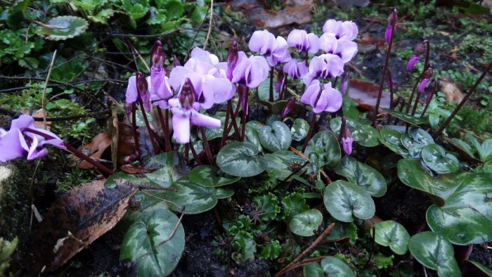 Die ersten Primeln und ganze Nester des Vorfrühlingsalpenveilchens (Cyclamen coum), dazu die erste Blüte der weißen Kamelie. Nicht nur die Schneerose Helleborus niger zeigt seine Blüten, selbst die Knospen der höheren H. orientale zeigen schon Farbe. Die Zaubernuss (Hamamelis) zögert noch, doch die unscheinbaren Blütenstände der Fleischbeere (Sarcococca) verbreiten ihren intensiven Wohlgeruch im Topf an der Haustür. Und die Chinesische Winterblüte (Chimonanthus praecox) schickt beim Lüften ihren sanften Melonenbukett ins Schlafzimmer. Welch ein Gärtnerglück!