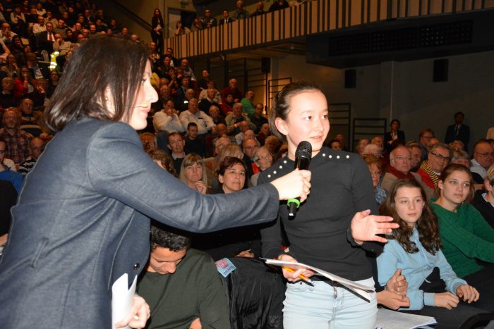 Und Schülerin Elisabeth Ködderitzsch erkundigt sich: „Halten Sie die Entwicklung in Katalonien für eine Gefahr für Europa?“. Offenbar zum ersten Mal an diesem Abend gehen hier die Meinungen auf dem Podium auseinander. Pascal Arimont hält vor allem die Verletzung der spanischen Verfassung durch die spanischen Separatisten für ein Problem. „Wenn das Schule macht, löst sich unsere gesamte Ordnung auf, dann haben wir demnächst zig unabhängige Regionen in Europa, das endet im Chaos“.