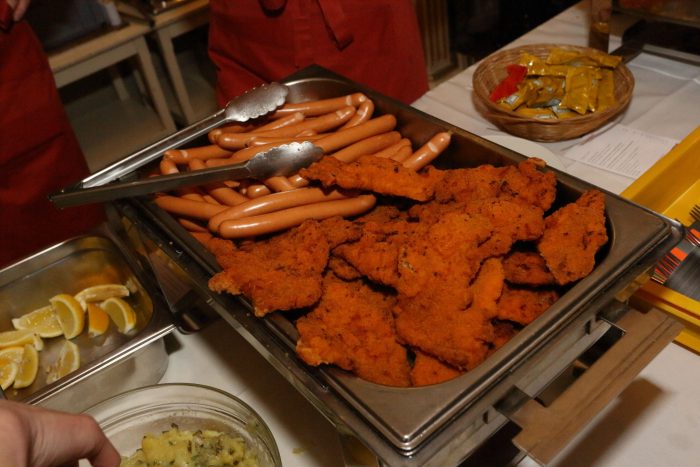 Für besondere Abwechslung wurde um Mitternacht gesorgt. Die Fledermaus-Quadrille hat manche sogar zu fast sportlichen Leistungen auf der Tanzfläche hingerissen. Beide Säle waren so gefüllt, dass einige Paare noch den Platz bis zur Eingangstür nutzen mussten. Das Tanzen – man könnte es salopp und schelmisch auch „Herumgehopse“ nennen – ließ das Concert Noble und die Herzen aller Ballbesucher erzittern. Die Stimmung war fast am Siedepunkt. Zur Stärkung wurde Champagner und Wiener Wein kredenzt, was ausgezeichnet zu Wiener Schnitzeln, Wiener Würstel und Gulaschsuppe passte. Liebhaber von Süßspeisen labten sich an Sachertorte und Apfelstrudel.