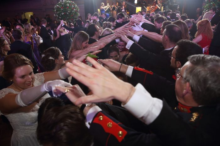 Im Anschluss daran eröffneten 23 Paare unter der Leitung von Carolina und Christophe Houtart – und hier wären wir beim dritten Jubiläum – mit einer Polonaise den Reigen der Tänze. Seit bereits 10 Jahren kümmern sich Madame und Monsieur Houtart rührend um die Vorbereitung der Eröffnung, welche schon mehrere Monate vor dem Ball beginnt. Im „Comité des Jeunes“ zeigte sich auch die belgische Noblesse, die mit einem „Prince“, einem „Comte“ sowie zwei „Baronessen“ vertreten war.